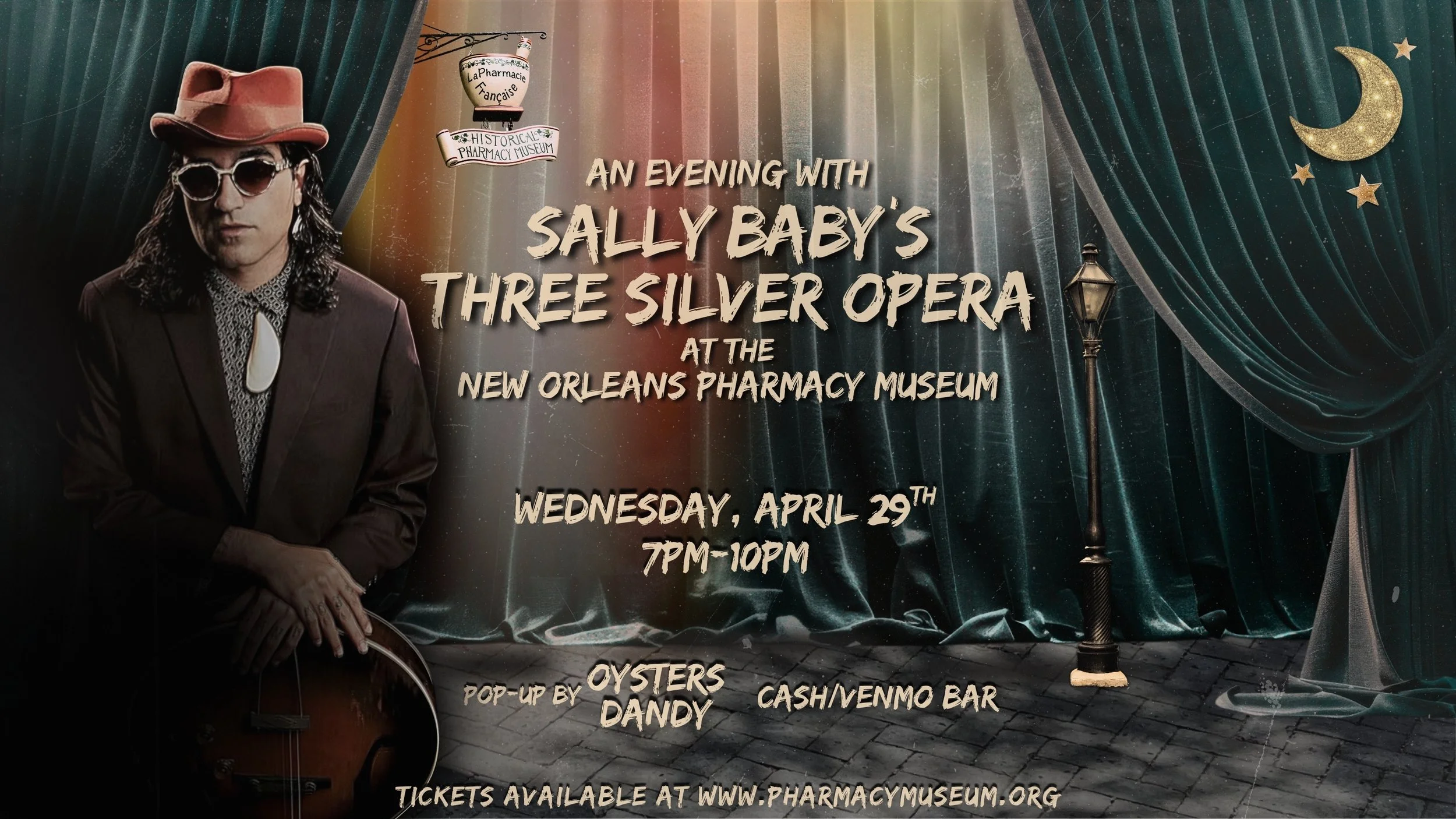 Soulful, charismatic, and quintessentially New Orleans, Sally Baby's Three Silver Opera is here to take you on the musical ride of a lifetime in the historic courtyard of the New Orleans Pharmacy Museum. On the heels of their NPR Tiny Desk debut, Sally Baby and the band are making their rounds to stages across the city at the height of festival season.